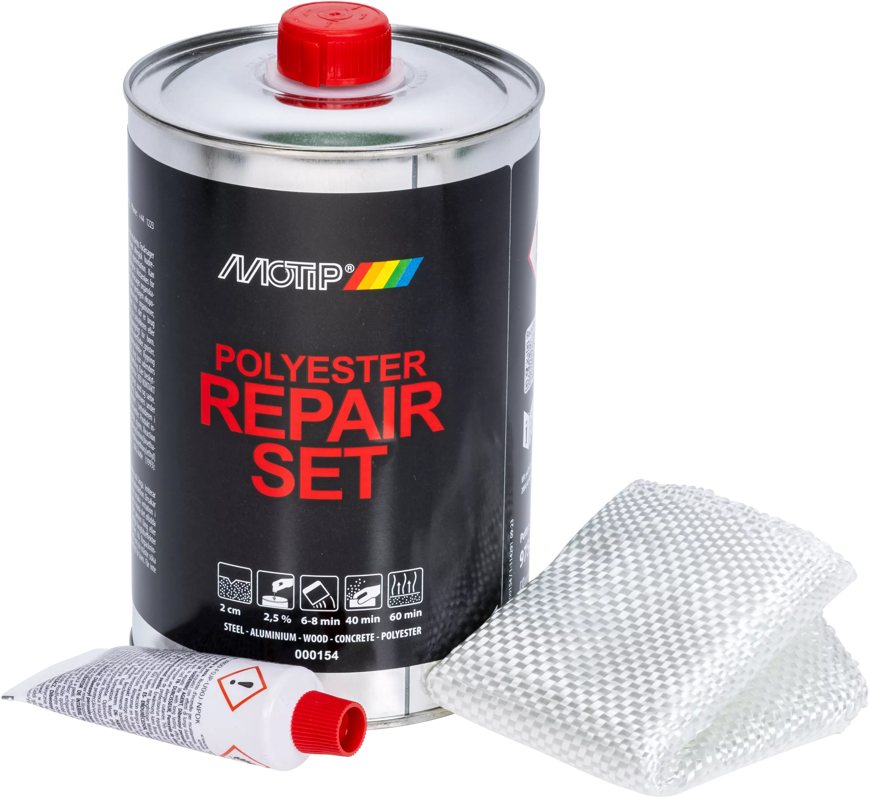 Nestemäinen polyesterhartsi, kovettaja ja lasikuituinen verkko mukana Metallille, puulle, betonille ja lämpökovetetuille synteettisille aineille Huomattavien vahinkojen, kuten reikien ja repeämien... Lue lisää