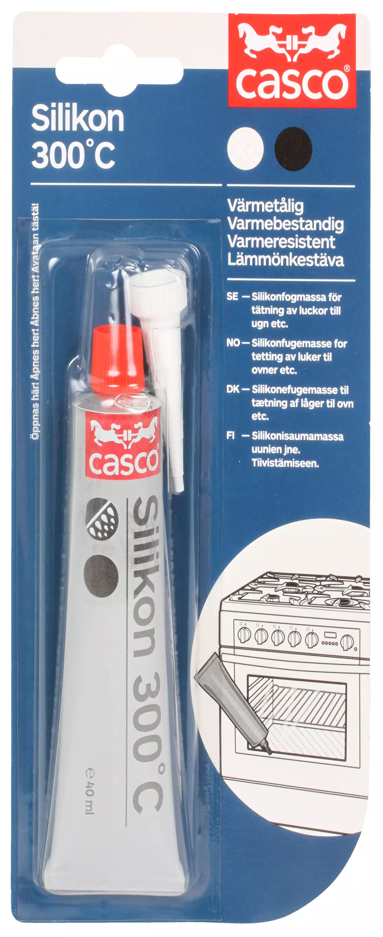- 300°C on lämpöä kestävä, elastinen silikonimassa kiinnitykseen ja tiivistämiseen