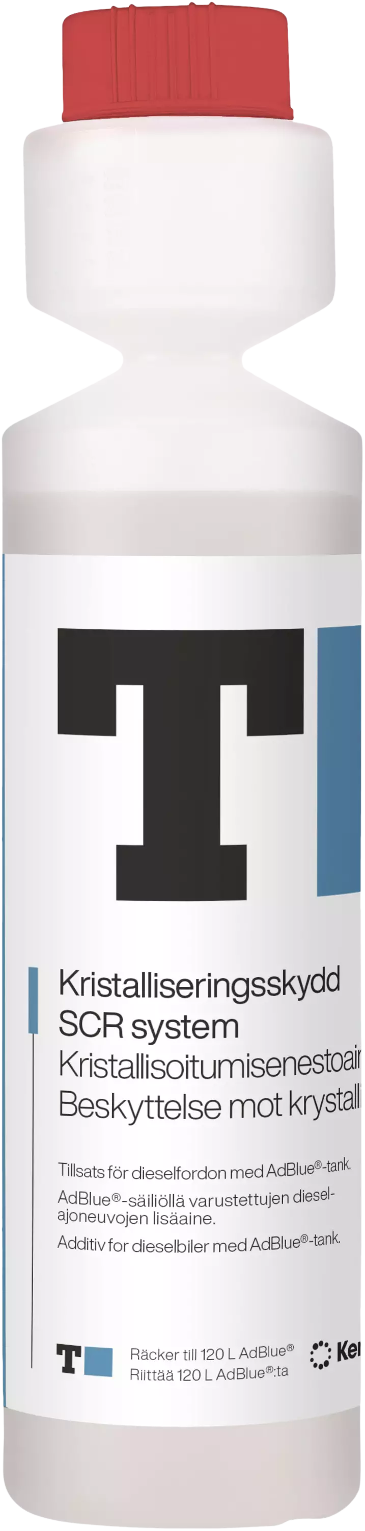 - Lisäaine dieselajoneuvoille, joissa on AdBlue®-säiliöt. Kiteytymisen estäjä estää ureakiteiden muodostumisen ja suojaa ajoneuvon SCR-järjestelmää.
