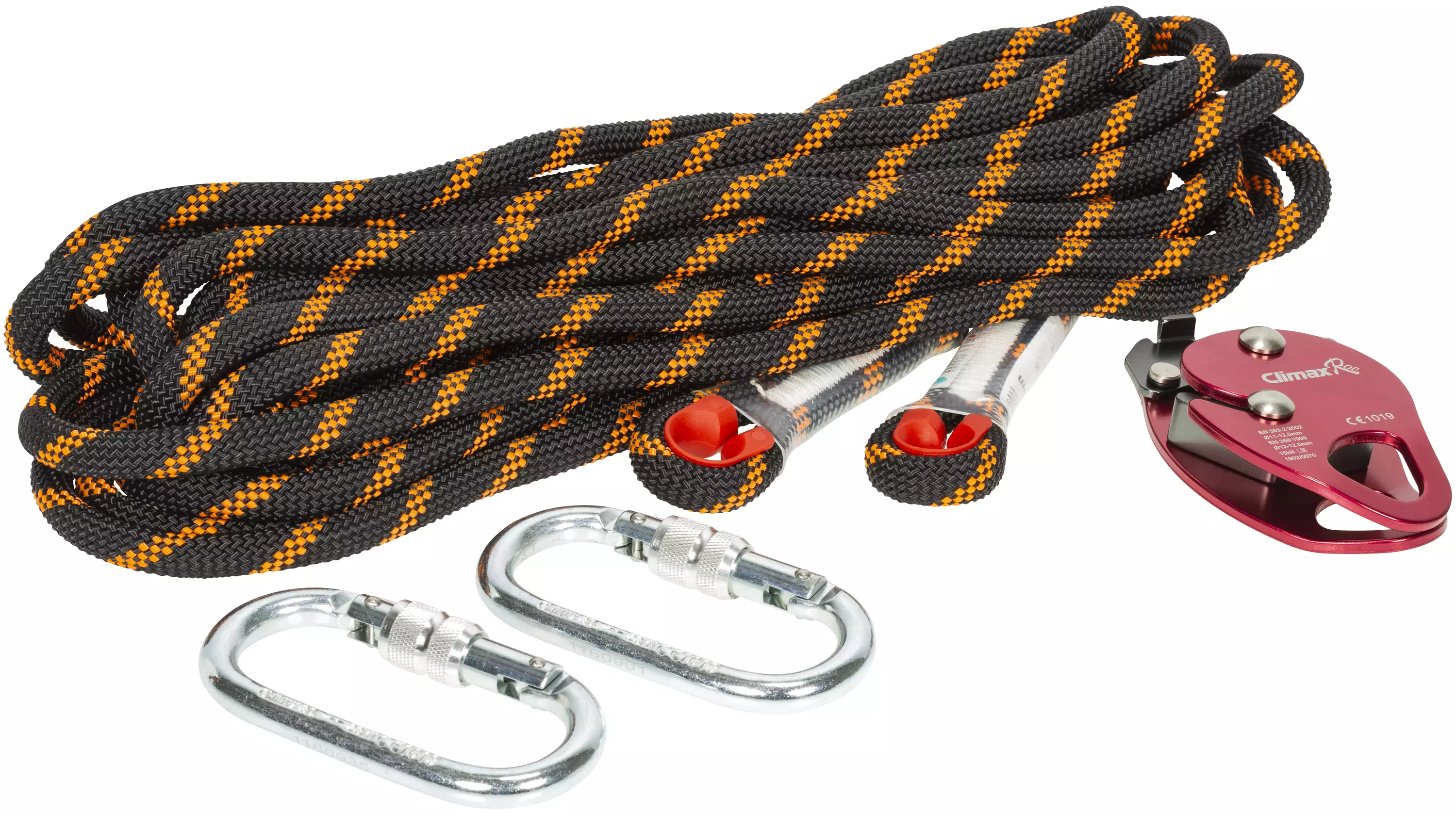 11 mm polyamidiköysi: pituus 10 m EN 1891 Climax ROC -jarru: murtolujuus 15 kN Ø 11-12,5 mm EN 353.2:2002 Ø 12 - 12,5 mm EN 358:1999 Karbiinihaka: murtolujuus 22 kN portin avauma 16 mm EN 362... Lue lisää