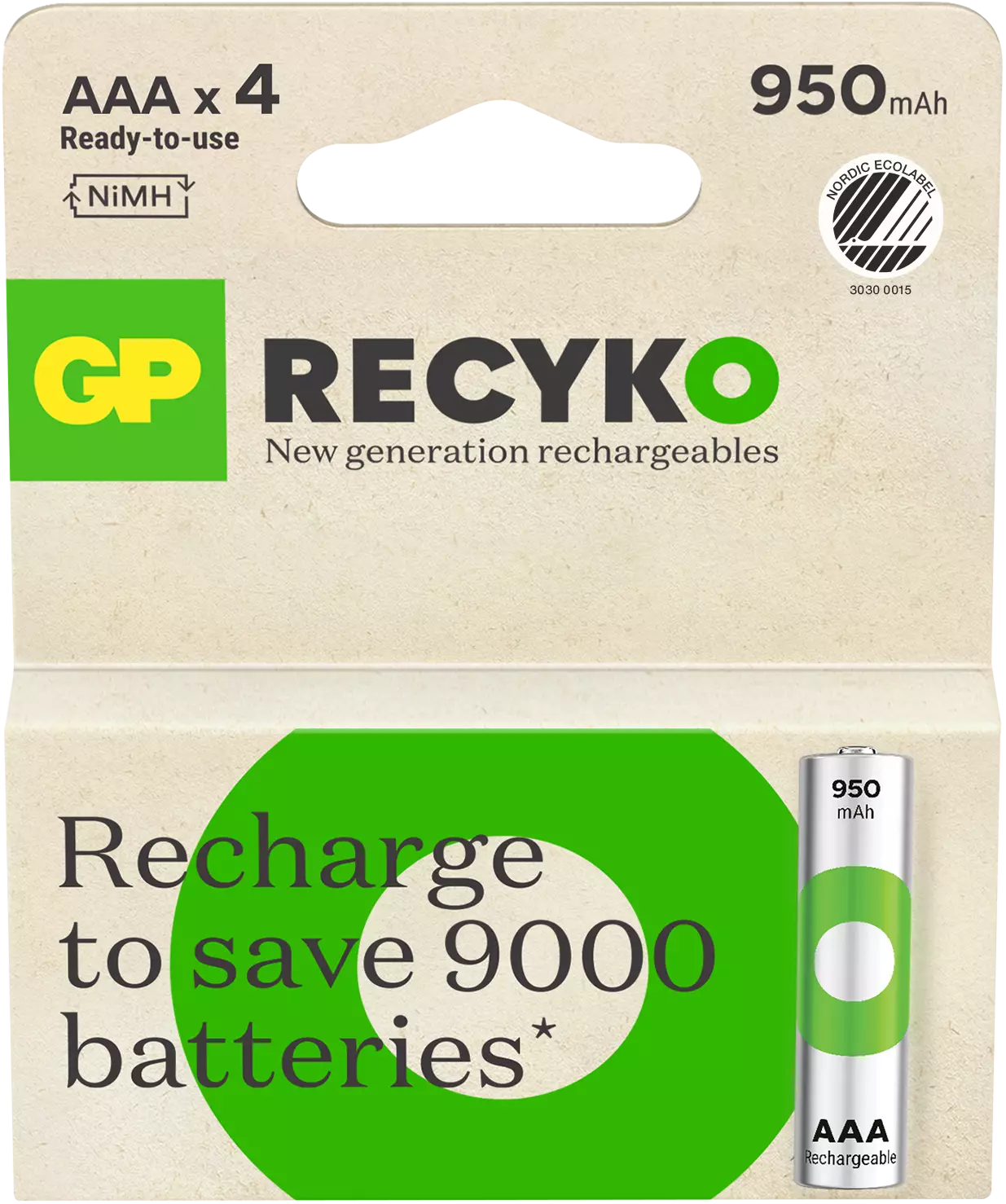 - ladattava Joutsenmerkitty NiMH AAA-akku, joka kuormittaa ympäristöä ja lompakkoasi vähemmän