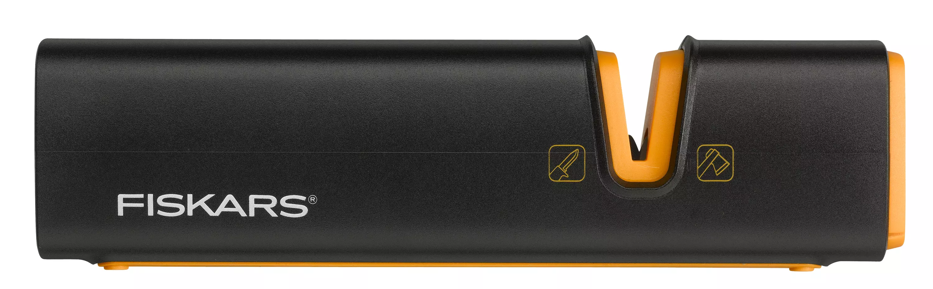 - Kaksi teroitinta yhdessä, keraamisessa hiomakivessä selvästi merkityt urat kirveille ja veitsille