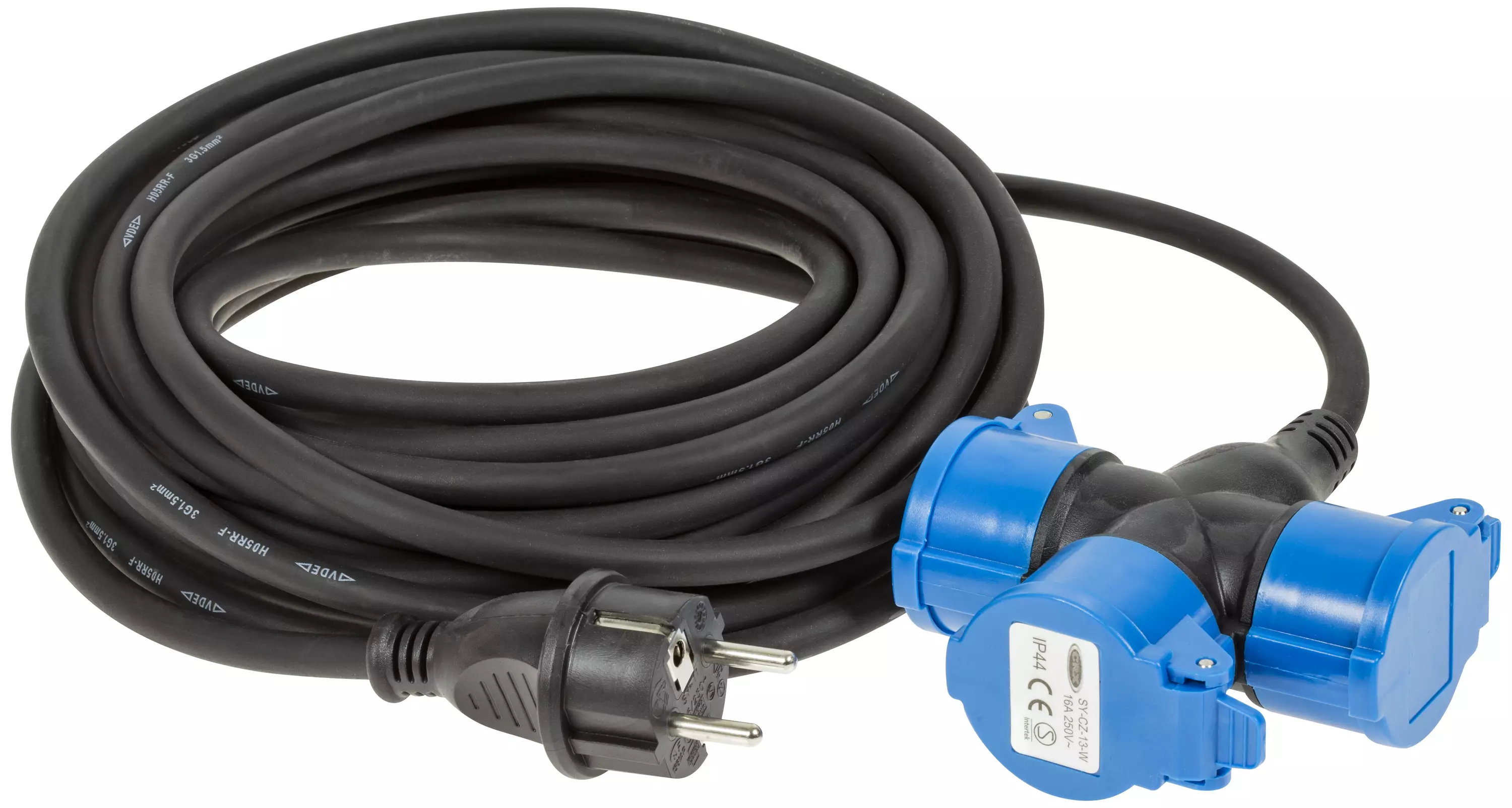 kumikaapeli 10 m, H05RR-F 3x1,5 mm² 3 x 230 V pistorasia kolme maadoitettua pistorasiaa itsesulkeutuvilla suojakansilla suojausluokka IP44 Pakkauksen pituus (cm) 23 Pakkauksen leveys (cm) 22... Lue lisää