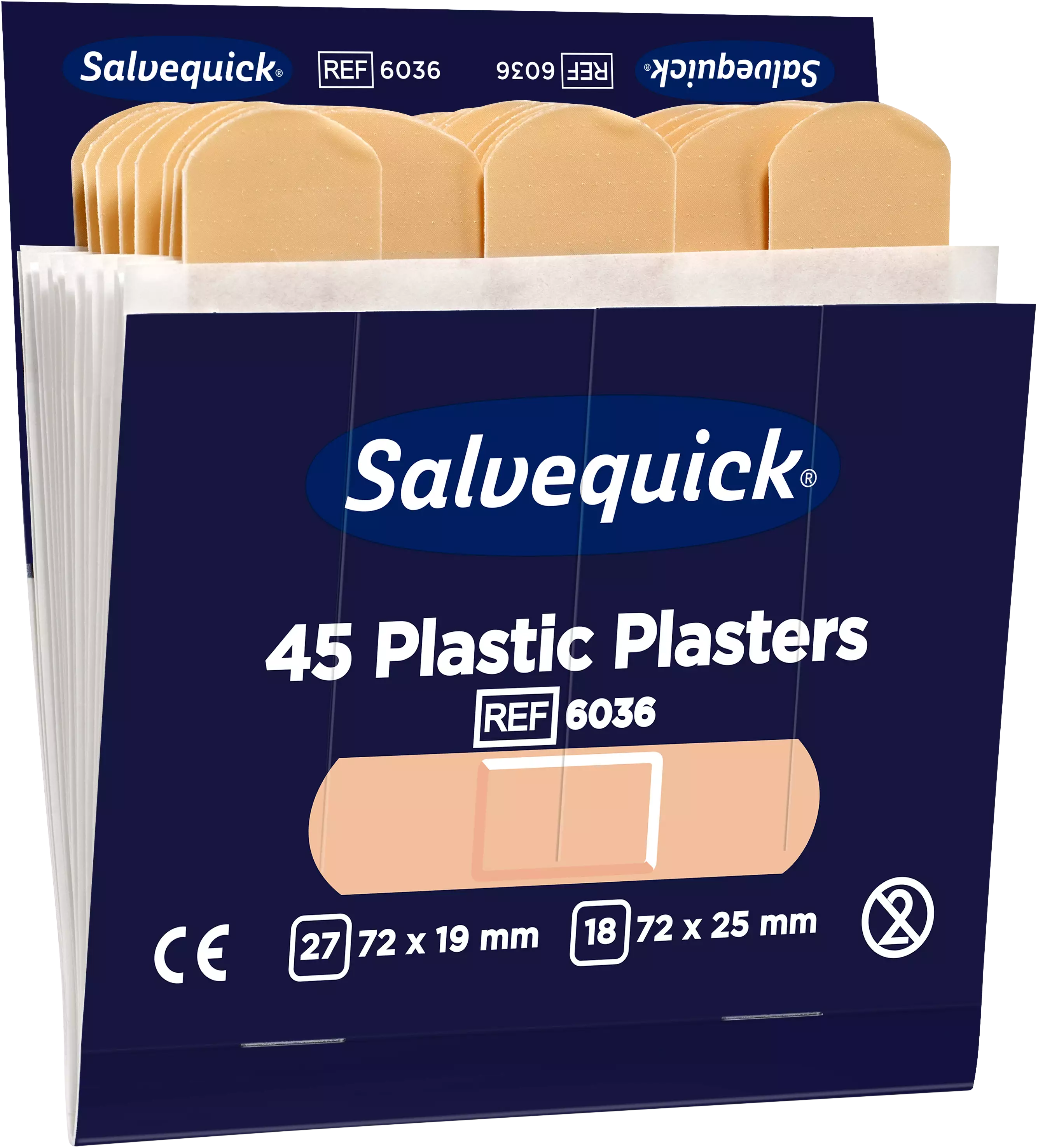 - 45 laastarin täyttöpakkaus (27 kpl 72 x 9 mm ja 18 kpl 72 x 25 mm)
